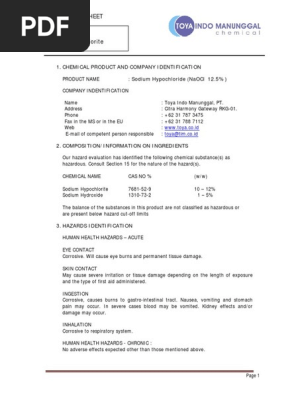 Msds Of Sodium Hypochlorite Pdf Dangerous Goods Chlorine